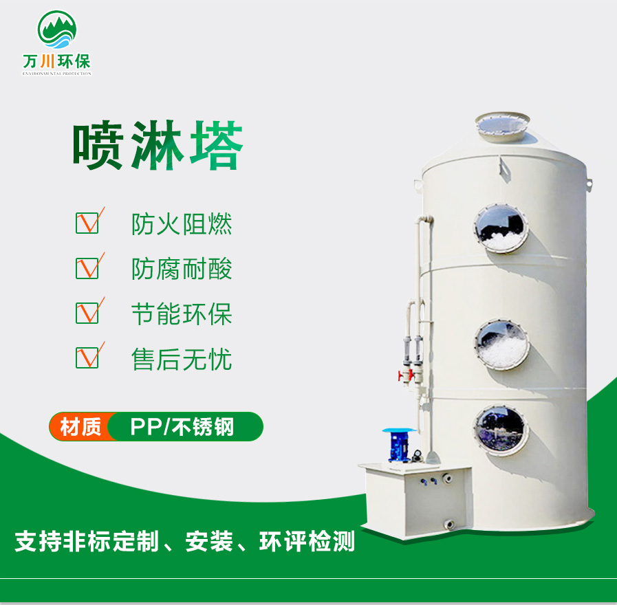 噴淋塔(俗稱:水淋塔)是一種處理煙塵廢氣的濕式環(huán)保設(shè)備,可適用于發(fā)電廠燃燒煙塵、鋼鐵廠、鍋爐燃燒、垃圾燃燒等煙塵廢氣處理,這類的煙氣粉塵容易溶于水,噴淋塔是處理這類煙氣粉塵的不二之選。煙氣粉塵從塔底進入塔內(nèi),塔內(nèi)有填料支撐板,噴淋塔從塔頂噴出液體,液體均勻的分布在塔內(nèi)和污染物充分接觸,達到凈化的效果,最后塔頂排出。