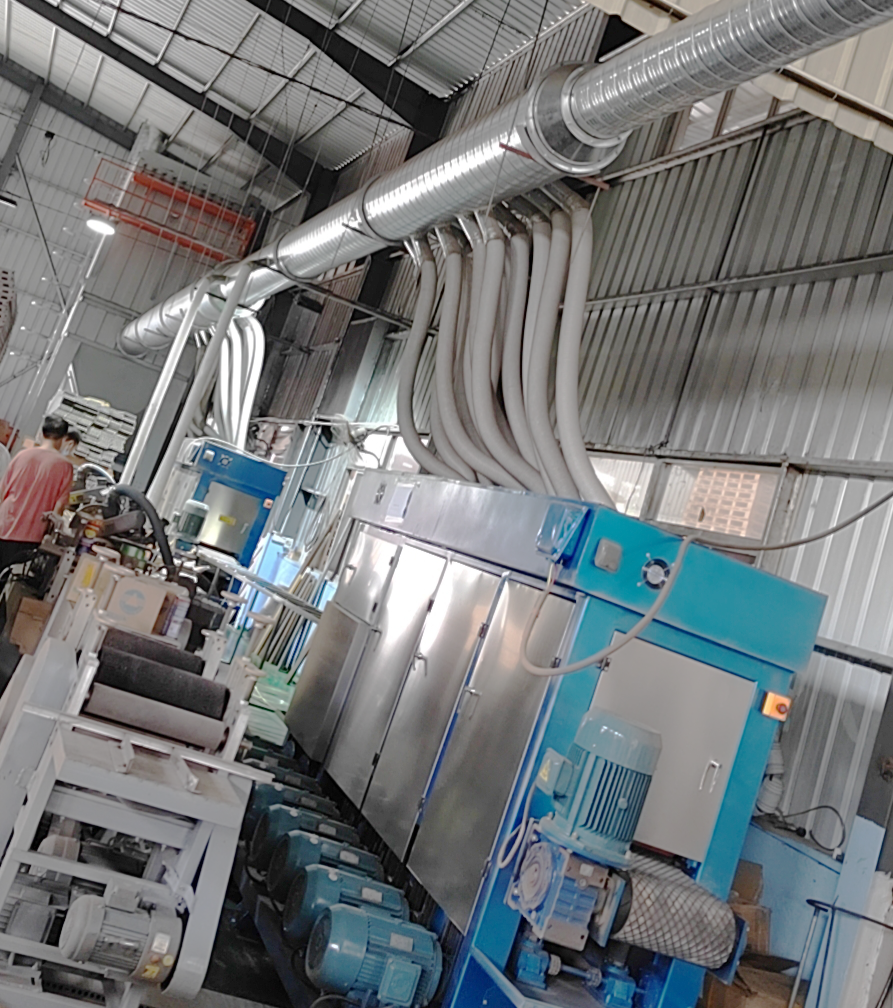 (木塑廠除塵現(xiàn)場安裝實拍圖)