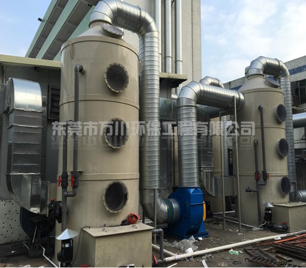 噴淋塔也叫水淋塔,是以水為介質(zhì)處理粉塵。含塵氣體從塔體下方進氣口沿切向進入噴淋塔,在風機的作用下,迅速充滿進氣段空間,然后塔頂位置的噴淋頭向下噴水,水與含塵廢氣接觸,使得空氣和粉塵分離,達到除塵的效果。噴淋塔具有結(jié)構(gòu)簡單、造價低、占地面積小、凈化效率高等優(yōu)點,能夠處理高溫、高濕的氣流,將著火、爆炸的可能減至最低。經(jīng)治理后,污染物排放達到標準:執(zhí)行《廣東省大氣污染物排放標準》(DB44/27-2001)中第二時段一級標準。