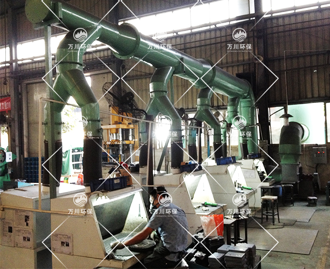 因生產打磨汽車配件時會產生大量的粉塵氣體,秉承對員工生產環境負責的態度,東箭汽車用品廠在對比多家廢氣處理廠家后,最終決定采用萬川環保廢氣處理設備--旋流板除塵塔。