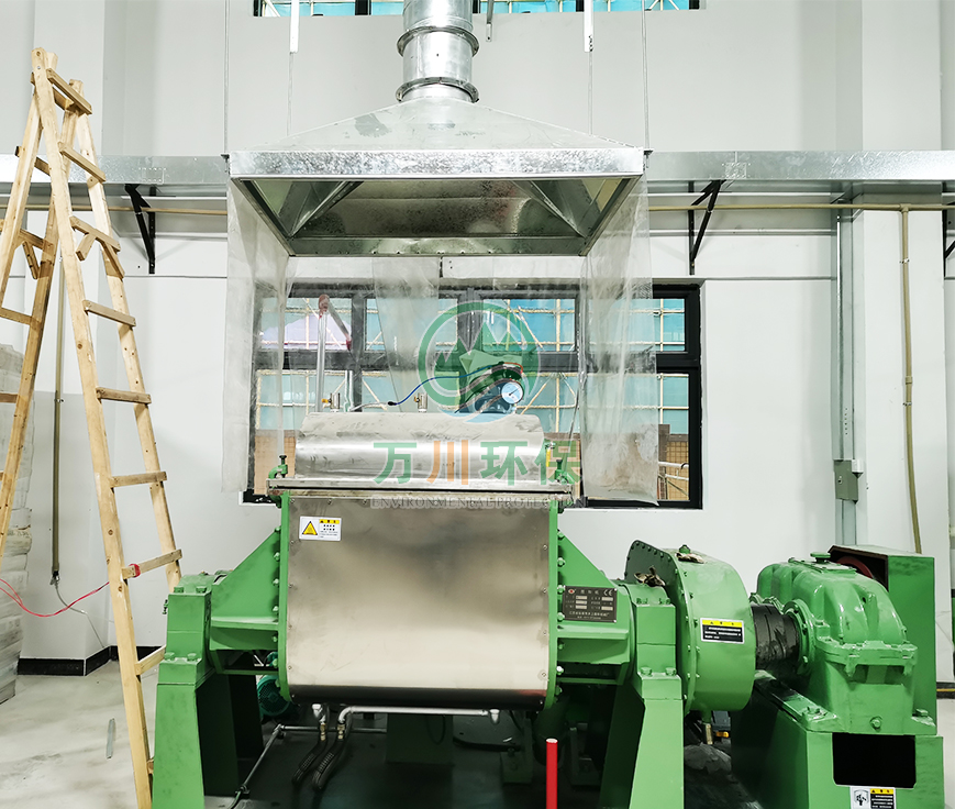 東莞某硅膠廠,成立于2003年,位于東莞市麻涌鎮,主要從事高科技的按鍵油墨及特種有機硅產品的研發、生產、銷售,該公司中設有捏合機生產車間,在生產工序中有廢氣和粉塵產生,污染了生產環境。對此,我們萬川環保為該公司提供捏合機廢氣粉塵處理解決方案。